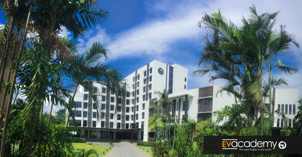 「セブ島人気No.1の語学学校」として名高いEV Academy。最大の特徴は、リゾートホテルのような最高水準の美しいキャンパスです。セブ市内中心部の利便性と、快適な寮・プール・ジムといった施設を両立させています。