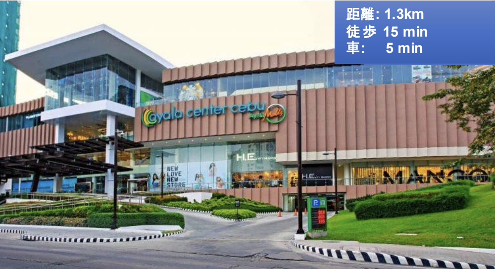 I.BREEZEはセブ市内の非常に便利な場所に位置しています。アヤラモール(徒歩15分)やSMモール(徒歩10分)といった大型ショッピングモールに加え、セブ最大級の病院へも車で10分程度でアクセス可能です。また、提携しているIDPのIELTS公式テストセンターも徒歩7分の距離にあります。